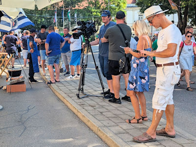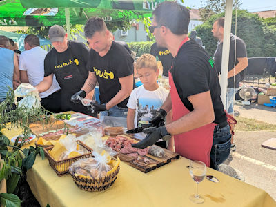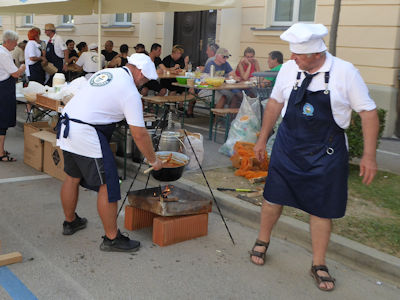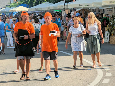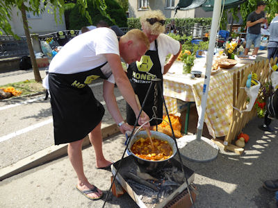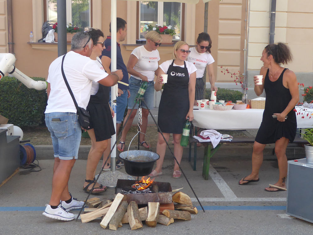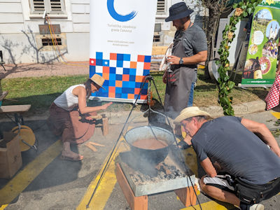 Die Teilnehmer sind international, neben den einheimischen Slowenen können wir hier Kroaten, Serben und Ungarn identifizieren. Neben Familien, finden sich Vertreter von Firmen, Universitäten, Vereinen, Gastronomie und sogar die Jugendorganisation der Demokratischen Slowenischen Partei SDM kocht hier mit ...