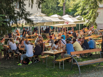 Allerorten laden Biertische zum Verweilen ein, und sollte man vom