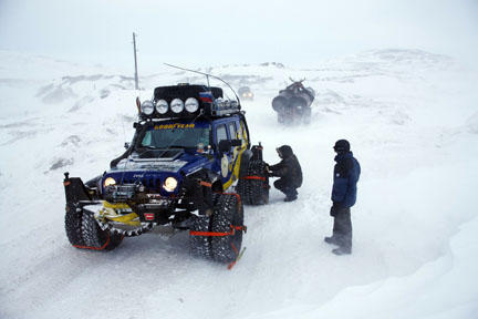 Haben soeben den 1000sten Kilometer härtester Offroad-Strecke, Schnee und Eis mit Temperaturen niemals höher als -20°/max. -56°C mit 0,5 bar oder weniger mit den 8 MT/Rs an den beiden Fahrzeugen ohne jeden Schaden gefahren! Danke Goodyear!