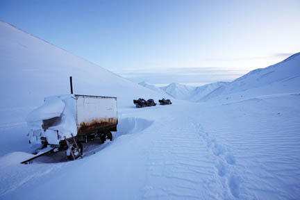 Trucks, die auf dem Weg von Egvekinot in die Mine sind, ist seit