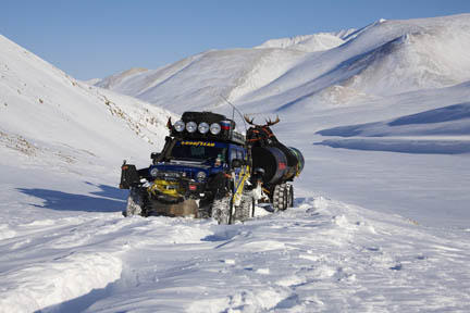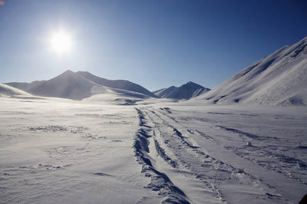 Haben soeben nach 6,5 Stunden schaufeln und winchen bei bestem Wetter die von der Schutzhütte 19 km entfernte Passhöhe des so genannten dritten Passes nach Pevek erreicht. Geil!