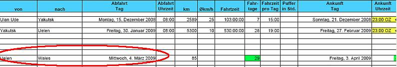 die Abfahrt von Uelen bereits für den 04. März 2009 geplant war