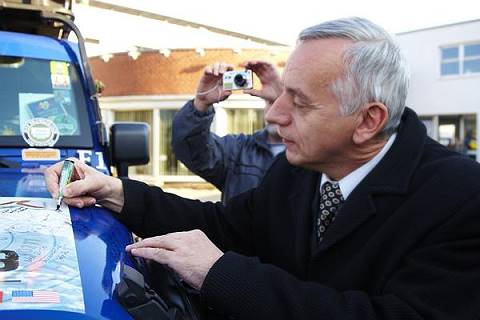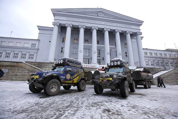 Jetzt sind wir in Ekatarinburg, wo wir am Donnerstag in der Technischen Hochschule die Expedition vorstellen. Von hier aus geht es am Freitagmorgen weiter auf eine kürzere Etappe nach Tjumen. Wir werden wiederum von dem Jeep Commander und zwei von Chrysler eingeladenen Journalisten begleitet. Darüber hinaus nimmt ein weiterer Journalist auf Einladung unseres Partners Goodyear im F1 Platz ...