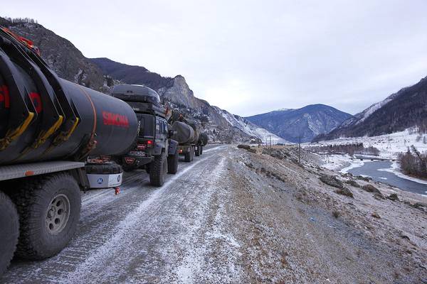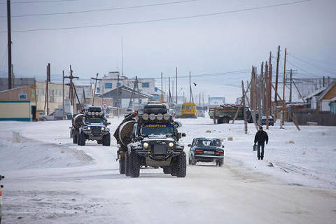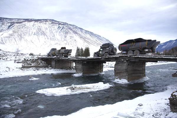 Berge, Schnee und wieder einmal Grenze: Mit zwei neuen Expeditionsteilnehmern - in Novosibirsk sind TV-Journalist Hendrik Pfefferkorn und Kameramann Marco Schwarzer zu uns dazu gestoßen - und vollständig neu gepackten, kältefesten Fahrzeugen sind wir nachmittags von Novosibirsk in Richtung mongolischer Grenze gestartet. Vor uns lagen 900 Kilometer und die Durchfahrung der landschaftlich extrem reizvollen russischen Region Altay. Diese Bergetappe hatte drei Herausforderungen für uns parat: den ersten Schnee, heftige Steigungen und Gefälle und das alles als Nachtfahrt. Solange wir noch ausreichend Licht hatten, gab die Strecke reichlich Foto- und Filmmotive her: Schafherden, Wildpferde, frei herumlaufende Kühe, grüne Flüsse, verschneite Bergkuppen und malerische Holzbrücken ...