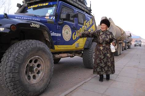 Die Mongolei begrüßte uns dafür mit einer echten Sensation: Nicht nur, dass die gesamte Grenzstation extra für unsere Abfertigung über die normalen Dienstzeiten hinaus geöffnet war, haben die Grenzbeamten ihren Job auch noch in Rekordzeit erledigt. Innerhalb von unübertrefflichen 45 Minuten waren alle Carnets gestempelt, die Pässe kontrolliert, die Einreise genehmigt. Außerdem haben sich die freundlichen Beamten auch noch filmen und fotografieren lassen - an allen anderen Grenzen auf´s Schärfste verboten. Als i-Tüpfelchen auf dieser Einreise wartete wie abgesprochen unser Guide Nasa unmittelbar an der Grenze auf uns. Ein freudiges Wiedersehen mit Matthias machte diese unkomplizierte Einreise perfekt!