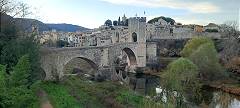 Die Kleinstadt in Katalonien hat etwa 2.500 Einwohner. Die ersten Funde von Besiedlungen im Gebiet der Stadt gehen zurück bis etwa 650 v. Chr., auch die Spuren des Mittelalters sind hier noch bestens erhalten. Deshalb wird der Ort auch gerne "mittelalterliches Dorf" genannt. Der alte Stadtkern ist sehr gut restauriert, die Bauwerke im Stil des Mittelalters stehen hier alle unter Denkmalschutz. Der kleine Fluss Fluviá, der auf den Bildern unten gut zu erkennen ist, entspringt in den Pyrenäen und mündet an der Costa Brava ins Mittelmeer.