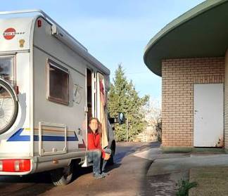 Auch in Besalú gibt es einen großen Schotterplatz vor dem schönen mittelalterlichen Stadtkern. An seinem östlichen Ende finden sich Stellplätze und der Service für Wohnmobile. Ich muss mich etwas beeilen, es ist schließlich Winter und die Sonne bleibt mir nicht mehr so lange am Himmel erhalten. Der reparierte Reifen ist problemlos gelaufen, das Loch bleibt dicht.