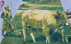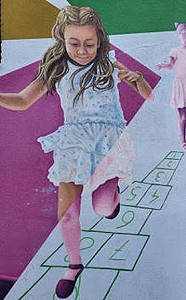 Am Ende des kleinen Parks erwarten mich dann zwei große Gemälde an zwei Wänden des Hauses: Sie sind wirklich groß und sehr detailliert gemalt. Diese beiden Gemälde sind eine Würdigung der Frau im ländlichen Bereich und ihr arbeitsreiches Leben. Von der Kindheit bis ins hohe Alter ...