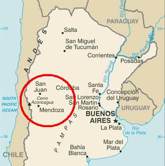Aconcagua: Der mit 6.962 Metern Höhe nicht nur höchste Berg Südamerikas, sondern auch der höchste Berg außerhalb Asiens und einer der berühmten "Seven Summits". Er liegt in den argentinischen Anden in der Provinz Mendoza, recht nahe an der chilenischen Grenze. Er besitzt mehrere Gletscher bis zu zehn Kilometern Länge. Auf diesem Berg bestehen mehr als 30 Aufstiegsrouten über Ost- und Westwand sowie Süd-, Nordwest- und Nordwand mit unterschiedlichsten Schwierigkeitsgraden. Neben "normalen" Routen für Bergsteiger mit geringerer Erfahrung bestehen auch sehr schwierige Routen, die bisher nur von wenigen Bergsteigern der Welt begangen wurden.