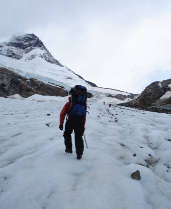 er wegen der Spalten nicht alleine über das Eisfeld wollte. Dumm genug