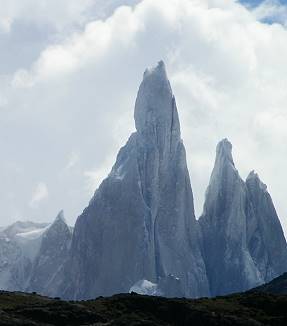 Wir stehen auf, frühstücken in unseren Zelten und sind gegen 1000 fertig für den letzten Teil der Runde: Es geht gemächlich über ausgetretene Pfade bei fast Windstille und klarem Himmel wieder Richtung El Chaltén. Vielleicht haben wir heute noch einmal die Chance, den Cerro Torre (siehe dazu die Anmerkung der Redaktion unten!) zu sehen. Und tatsächlich, die Wolken um den Gipfel herum verschwinden langsam und geben den Blick auf diesen unbeschreiblichen und einmaligen Berg frei. Ich spreche wohl für alle, wenn ich sage, dass diese Tour kaum schöner enden konnte ...