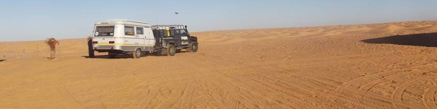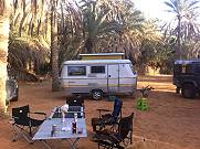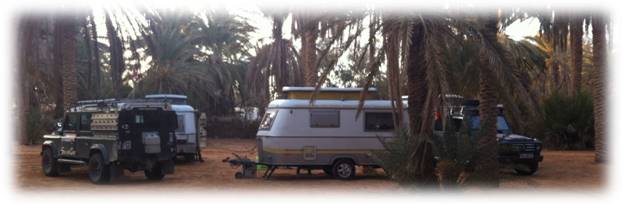 Wir haben unseren Wohnwagen jeweils auf einem Campingplatz abgestellt und von dort aus Tagestouren unternommen. Wenn man sich nicht verfährt und in den Dünen nicht schaufeln muss, dann schafft man die Tour von Douz bis zu den Tafelbergen von Tembaine und wieder zurück an einem Tag. Und Ksar Ghillane kann man ja inzwischen auf Teerstraße erreichen. Vielleicht hätten wir uns mit den Wohnwagen etwas geschämt, aber es gab keine Offroader, vor denen wir uns hätten schämen können. Jetzt, Mitte Januar, war Tunesien "fast Offroader-Frei" ...