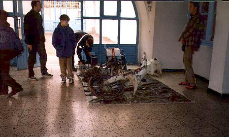 Nachdem Steffens Motorrad Ärger machte (Ölverlust), Djerba desillusionierend und uns der dauernde Regen lästig war, entschieden wir uns, den direkten Weg nach Tataouine zu nehmen und dort unser Glück zu versuchen. In Tataouine suchten wir zunächst das Governat militaire, das wir nach langem Suchen und Fragen endlich fanden. Aber auch hier "Inschallah", "Kismet", Gott wird's richten, aber heute nicht!