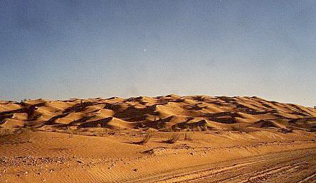 Zunächst fuhren wir in Richtung El Borma. Wellblechpiste, ab und zu versandet, aber gut zu fahren. Zirka 10 km vor El Borma fangen die ersten Ausläufer des Grand Erg an.