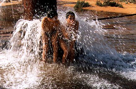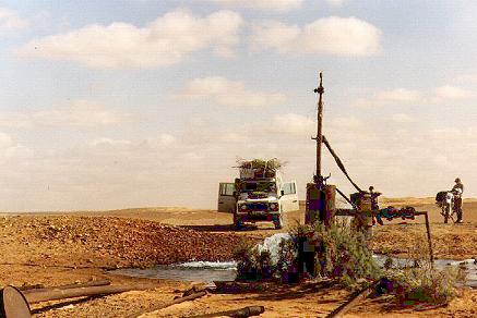 Als Tipp für Leute, die in der Wüste warm duschen wollen: La Arich. Ihres Zeichens Ölbohrstation, die Leichtöl fördert und die auch eine Wasserpumpstation hat, die etwas defekt ist. Aber Vorsicht: Kein Trinkwasser, da stark schwefelhaltig - aber zum Duschen phänomenal!