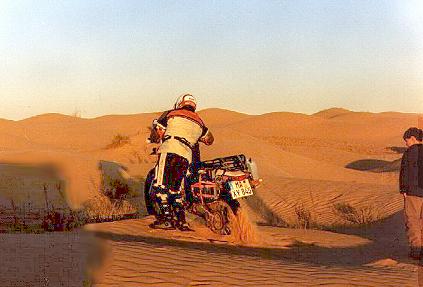 Das Wochenende verbrachten wir mit Rundreisen im Dahargebirge, Motorradreparaturen und Badeeinlagen in Ksar Ghilane, wo es eine warme Quelle gibt. Da Steffen beschlossen hatte, nicht nach Libyen einzureisen, blieb er bei uns und am Montag, den 28.12.98, ging es dann los in Richtung Remada.