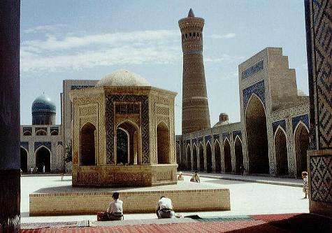 Buchara, die erste Stadt in Usbekistan, empfängt uns mit ihren alten und gut erhaltenen Bauten. Hier kann man sich das Karawanenleben an der Seidenstraße noch richtig vorstellen. Der Basar und große Teile der Altstadt sind erhalten geblieben. In der Altstadt lädt ein großer Brunnen zum Verweilen ein. Was wir auch gerne tun, da die Temperaturen im Sommer mal wieder gegen 40° C gehen. Das Treiben hier ist auch schon so richtig orientalisch. Der Kontrast zu Russland mit seinem schlichtem, immer noch vorherrschend kommunistischen Charme ist gewaltig. Hier das bunte Leben, dort alles grau in grau. Dennoch, die Zeit drängt, es geht weiter nach Samarkand ...
