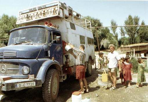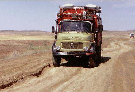 Aktjubinsk bedeutete aber für uns auch die letzte sichere Versorgungsmöglichkeit. Obwohl wir uns natürlich überall erkundigt hatten, erhielten wir unterschiedliche Aussagen darüber, ob es auf der von uns geplanten Route Diesel und Lebensmittel gibt, denn normalerweise fährt kein Kasache diese Strecke! Also füllten wir unsere Diesel- und Wassertanks auf und ergänzten die Lebensmittelvorräte. Nachdem auch noch die Wäsche gewaschen und der Basar ausreichend besichtigt war, konnte es losgehen mit unserem Abenteuer der Durchquerung der kasachischen Steppe und der Karakum Wüste ...