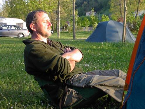 wärmt uns auf. Aus dem Auto hole ich eine Kunststoffmatte und
