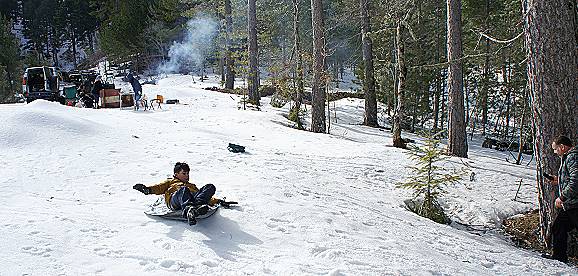 Und wieder geht’s mit Hasan (1) und Süleyman in die Berge: Wie gehabt wird alles für´s Grillen mitgenommen. Als wir von der Hauptstraße abbiegen, fahren wir "mal wieder" durch Schnee. Als es überhaupt nicht mehr weiter geht - Hasan hat seinen Disco festgefahren und muss mittels meiner Winde wieder rausgezogen werden - drehen wir unsere Fahrzeuge.