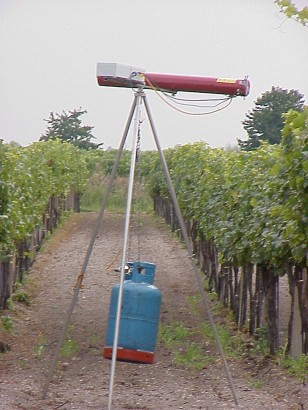 Unser Weg entlang des Sees führt uns an Weingärten vorbei, deren Rebstöcke voll von reifen Trauben hängen. Wir wollen uns die Trauben genauer anschauen. Kaum nähern wir uns einem Weinstock, gehen wieder Schüsse los, diesmal unmittelbar neben uns. Der Schreck fährt uns in alle Knochen, aber nun gehen wir dem Spuk auf den Grund: Wenige Meter neben uns hängt eine abenteuerliche Konstruktion aus einer Gasflasche und einem Schussapparat, der regelmäßig in wechselnde Richtungen feuert. Mit unserer Annäherung hat das nichts zu tun, denn die Krachmacher dienen nicht als Abwehr gegen neugierige oder naschhafte Touristen, sondern gegen gefräßige Vögel. Zusätzlich flattern so allerlei Bänder und Drachen zwischen den Reben und ab und an fliegt ein Pilot im Tiefflug über die Weingärten, der den Zuschauer dabei mit so mancher Kunstflugeinlage unterhält ...