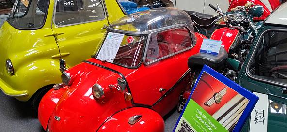 Es ergab sich ein Besuch im Lakeland Motor Museum in Backbarrow. Hier findet sich tatsächlich sogar ein Messerschmitt Kabinenroller, dessen Konstrukteur Fritz Fend ich vor vielen Jahren kennen lernen durfte. Er hatte gerade den F2000 gebaut, der ein würdiger Nachfolger der Kabinenroller war. Der damalige Prototyp, den er mir zeigte, befindet sich nun in Bad Wörishofen. Er hat eine BMW K75 Triebsatzschwinge und war mit seiner Technologie und knapp über zwei Liter Verbrauch der Zeit weit voraus. Den Urahnen des F2000 sah ich noch vor wenigen Tagen per Zufall bei der Oldtimerrally - den Morgan Threewheeler.