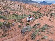 Da im Osten noch zwei Höhepunkte auf uns warten, brechen wir schweren Herzens auf und es geht weiter zum Skazka Tal: Ein einsamer Stellplatz in einem kleinen Seitental, welches gerade so breit ist, dass wir noch die Kabinentür öffnen können. Ein Traumplatz, den wir allerdings nur nach langer, konzentrierter Rückwärtsfahrt erreichen. Der Mühe Lohn: Einsam können wir den Sonnenunter- und -aufgang inmitten dieser fantastischen, in erdfarbenen Tönen explodierenden Hügeln, Burgen, Wällen und steilen Felsen erleben.